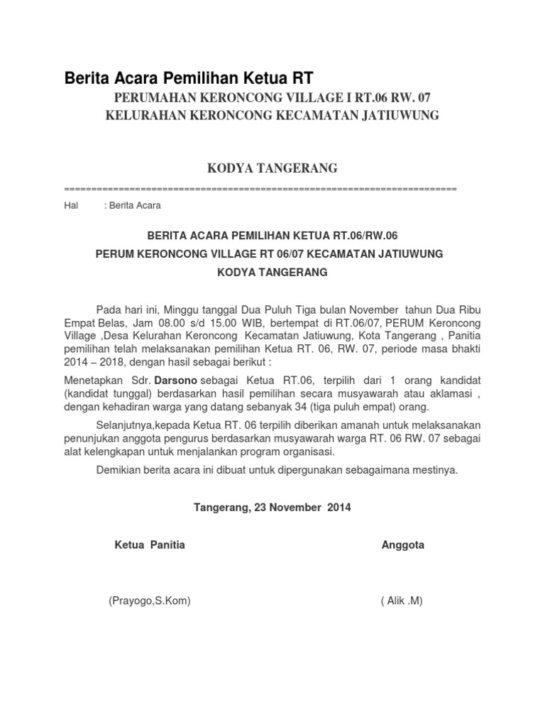 Surat Berita Acara Pemilihan Rt. : Contoh Berita Acara Rapat Pemilihan Rt Kumpulan Soal Pelajaran 8 / Berita acara pemungutan dan penghitungan suara pemilihan ketua rw.